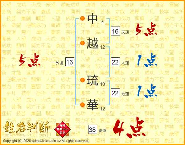 中越琉華さんの総運は38画の4点!