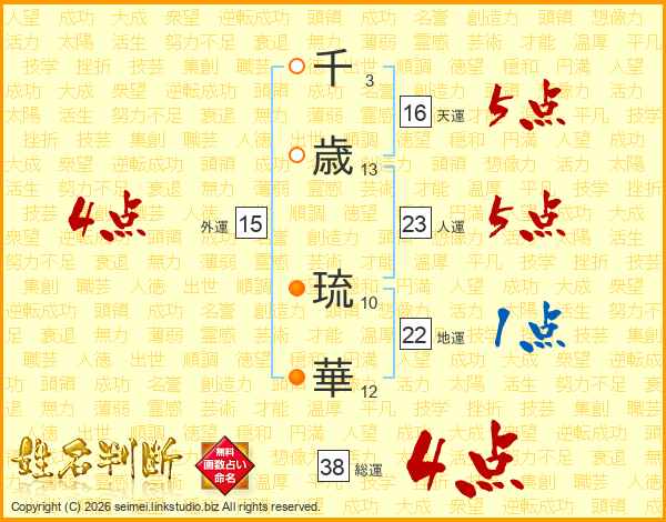 千歳琉華さんの総運は38画の4点!