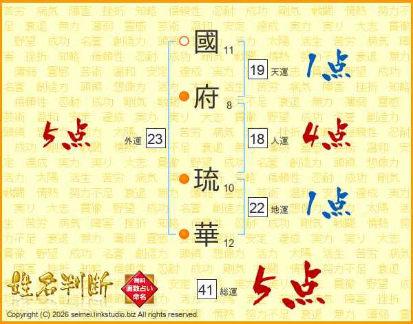 國(11画)府(8画) 琉(10画)華(12画)
