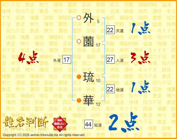 外薗琉華さんの総運は44画の2点!