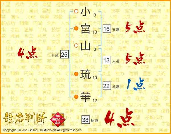 小宮山琉華さんの総運は38画の4点!