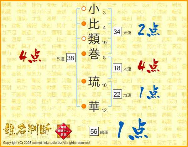 小(3画)比(4画)類(19画)巻(8画) 琉(10画)華(12画)