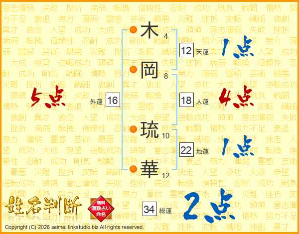 木岡琉華さんの総運は34画の2点!