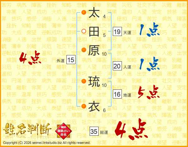 太田原琉衣さんの総運は35画の4点!