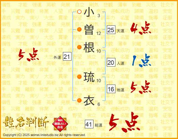 小曽根琉衣さんの総運は41画の5点!