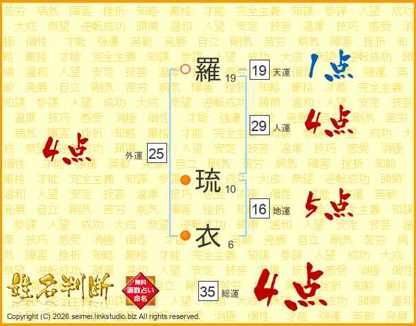 羅琉衣さんの総運は35画の4点!