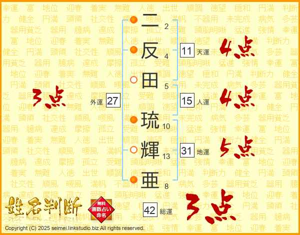 二反田琉輝亜さんの天運は11画の4点!