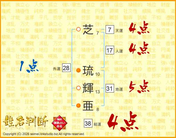 芝琉輝亜さんの総運は38画の4点!