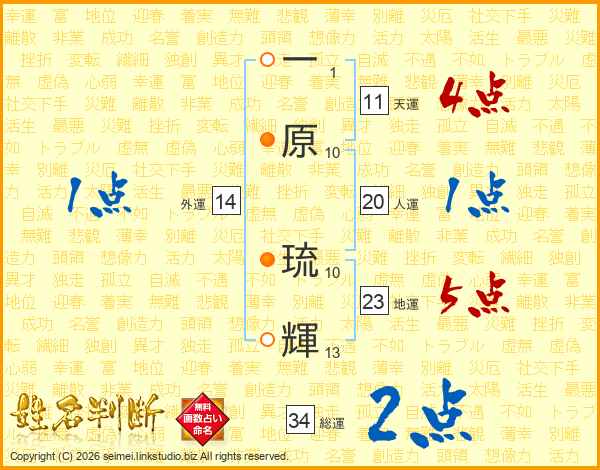 一原琉輝さんの総運は34画の2点!