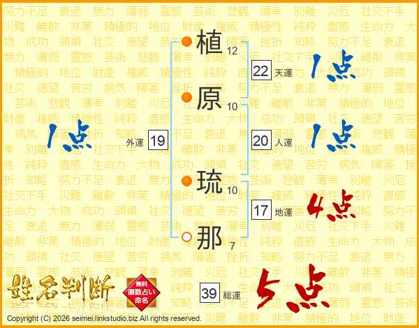 植原琉那さんの総運は39画の5点!