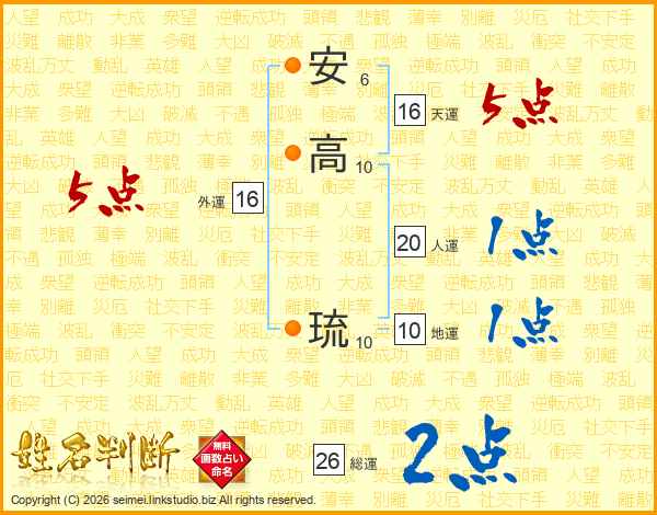 安高琉さんの総運は26画の2点!