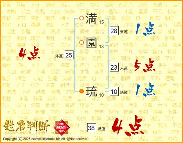 満園琉さんの総運は38画の4点!
