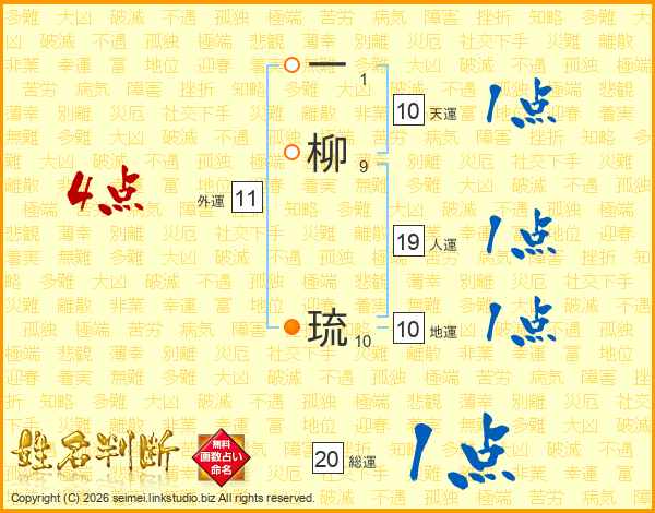 一柳琉さんの総運は20画の1点!