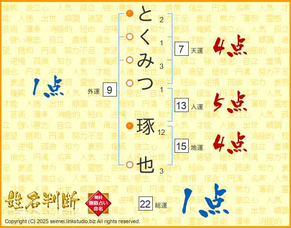 と(2画)く(1画)み(3画)つ(1画) 琢(12画)也(3画)