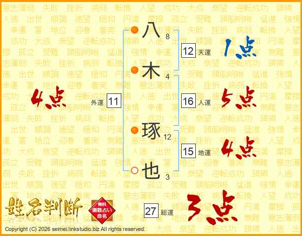 八木琢也さんの総運は27画の3点!