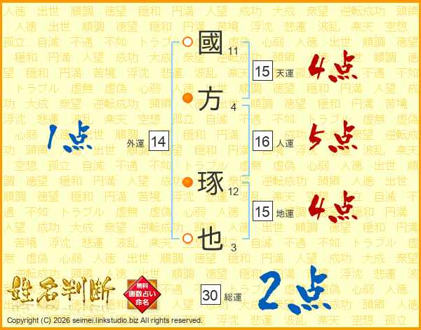 國方琢也さんの天運は15画の4点!