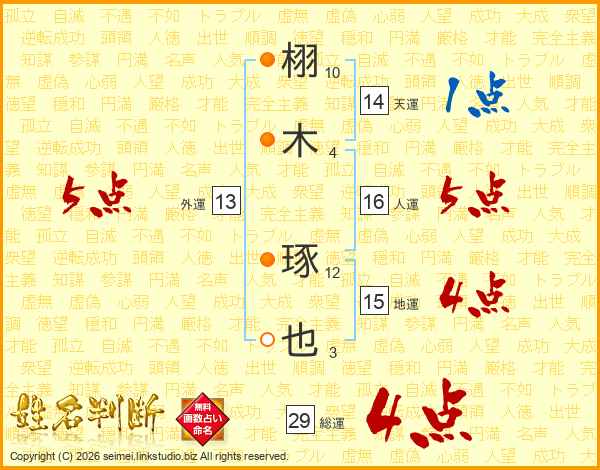 栩木琢也さんの総運は29画の4点!