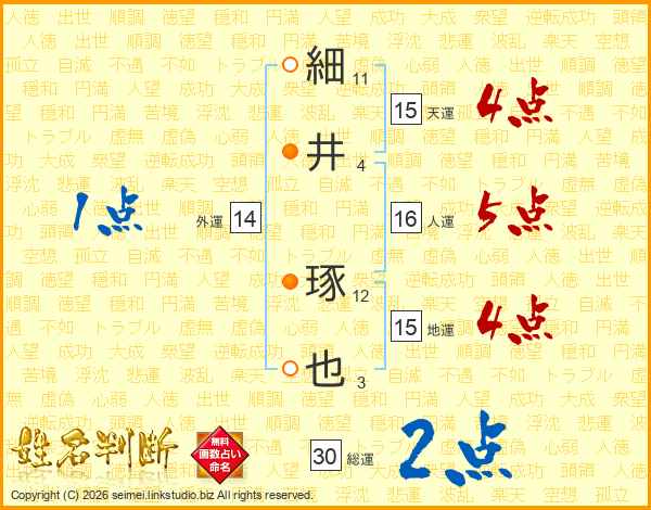 細井琢也さんの総運は30画の2点!