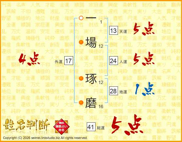 一場琢磨さんの天運は13画の5点!