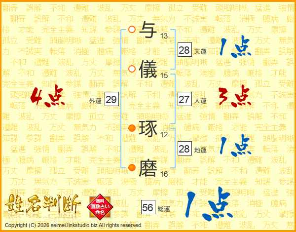 与儀琢磨さんの天運は28画の1点!