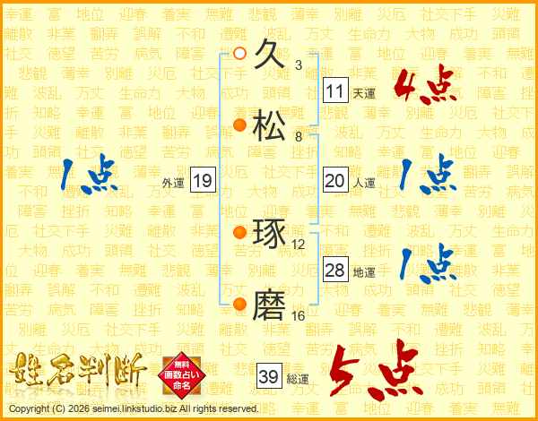 久松琢磨さんの総運は39画の5点!