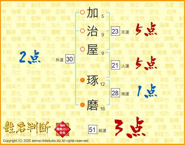 加治屋琢磨さんの総運は51画の3点!