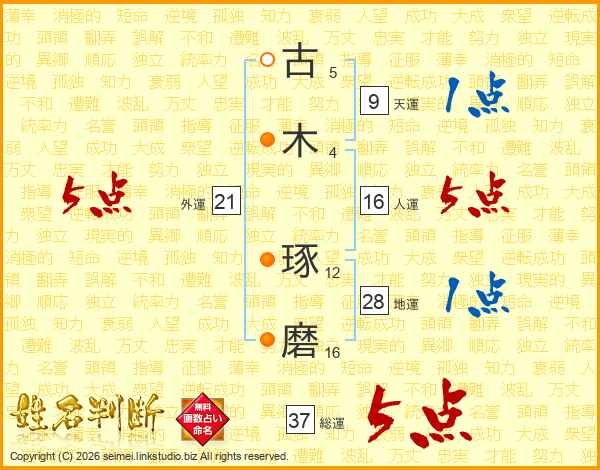 古木琢磨さんの総運は37画の5点!