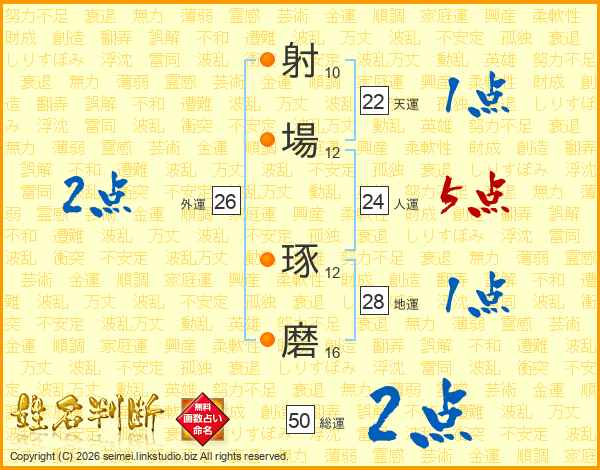 射場琢磨さんの天運は22画の1点!