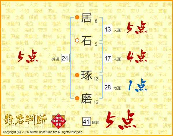 居石琢磨さんの総運は41画の5点!