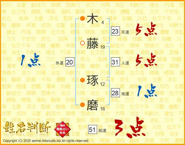 木(4画)藤(19画) 琢(12画)磨(16画)