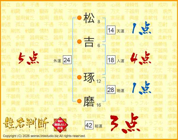 松吉琢磨さんの天運は14画の1点!