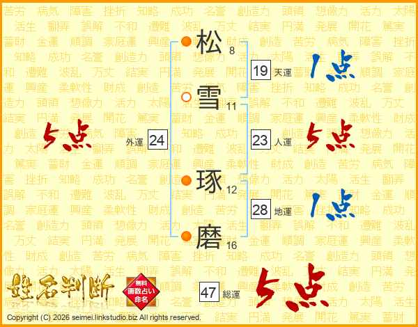 松(8画)雪(11画) 琢(12画)磨(16画)