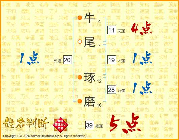 牛(4画)尾(7画) 琢(12画)磨(16画)