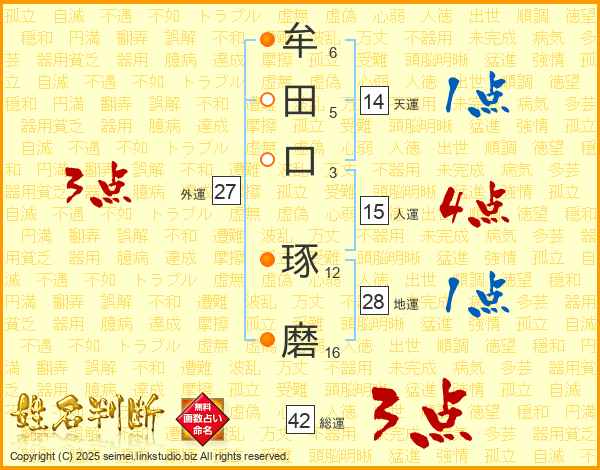 牟田口琢磨さんの天運は14画の1点!