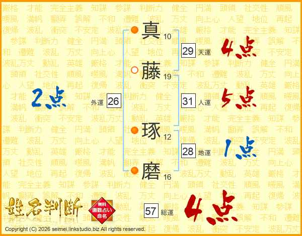 真藤琢磨さんの総運は57画の4点!