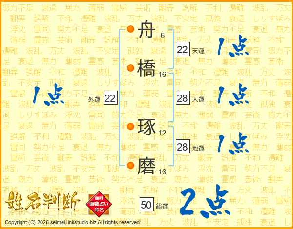 舟(6画)橋(16画) 琢(12画)磨(16画)