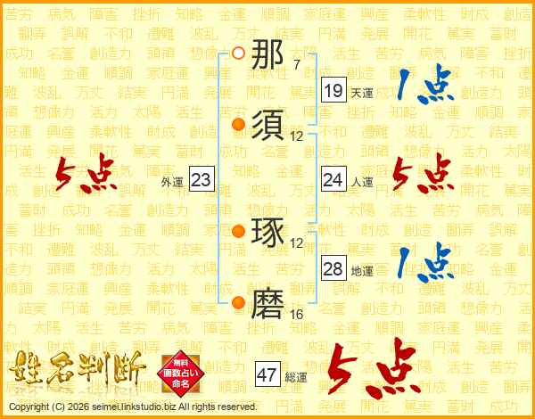 那須琢磨さんの総運は47画の5点!