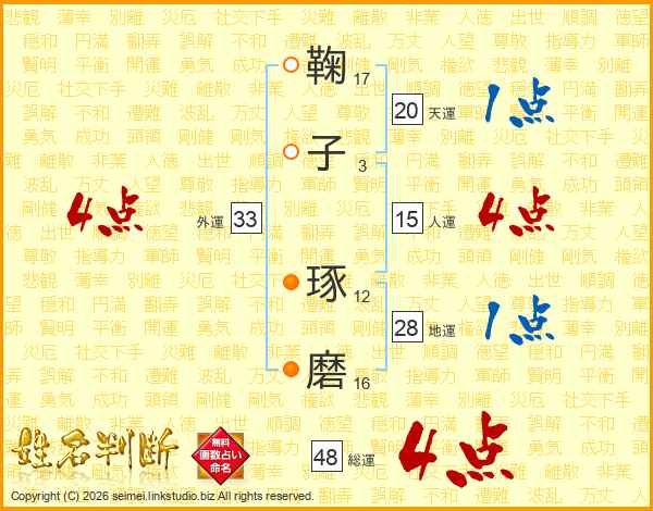 鞠子琢磨さんの総運は48画の4点!