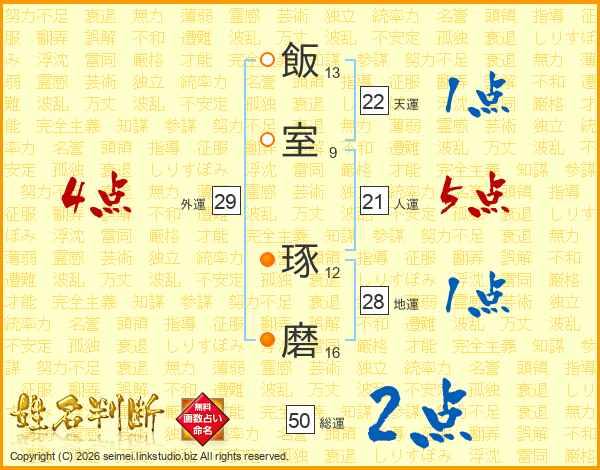 飯室琢磨さんの総運は50画の2点!