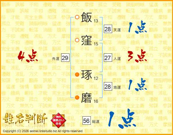 飯窪琢磨さんの総運は56画の1点!