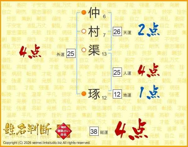 仲村渠琢さんの総運は38画の4点!