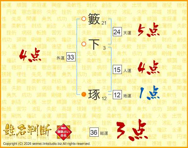 籔下琢さんの外運は33画の4点!