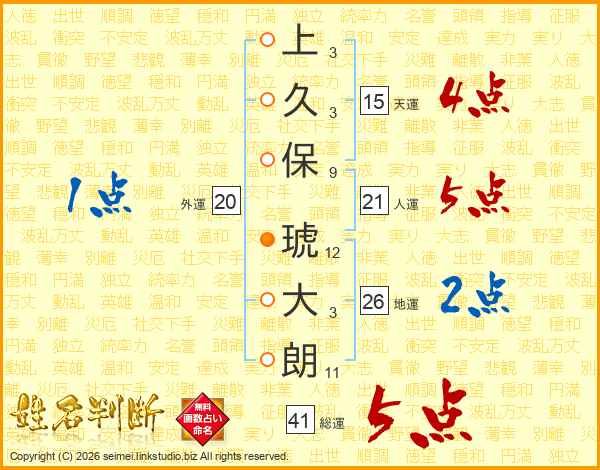上久保琥大朗さんの地運は26画の2点!