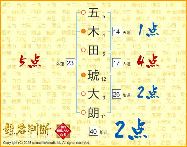 五木田琥大朗さんの天運は14画の1点!