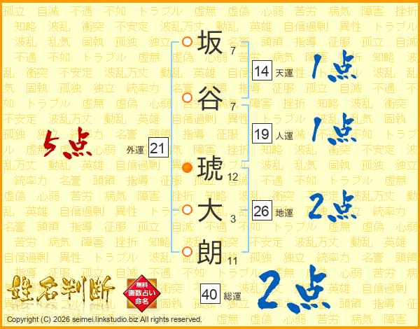 坂谷琥大朗さんの地運は26画の2点!