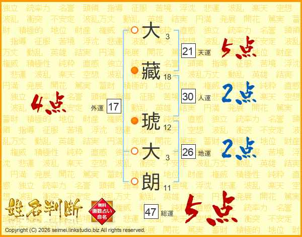 大藏琥大朗さんの総運は47画の5点!