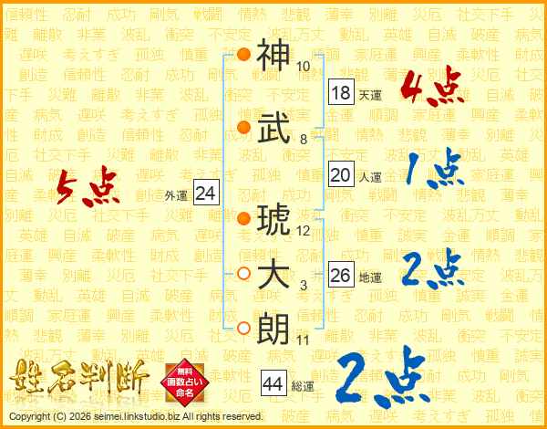 神武琥大朗さんの地運は26画の2点!