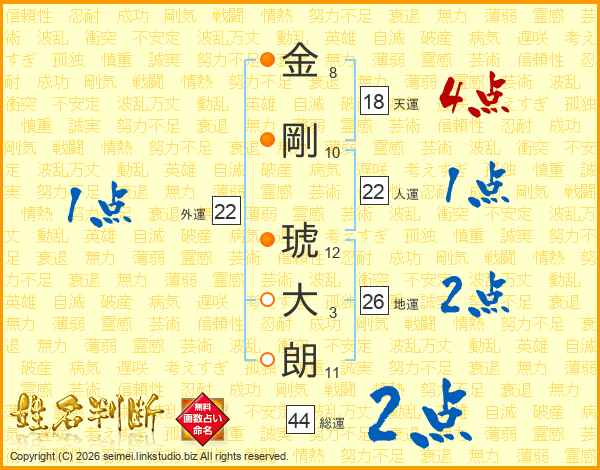 金剛琥大朗さんの地運は26画の2点!