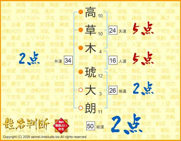 高草木琥大朗さんの地運は26画の2点!