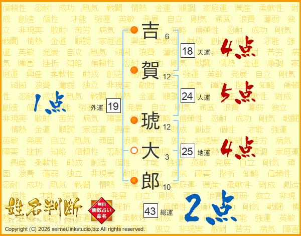 吉賀琥大郎さんの人運は24画の5点!